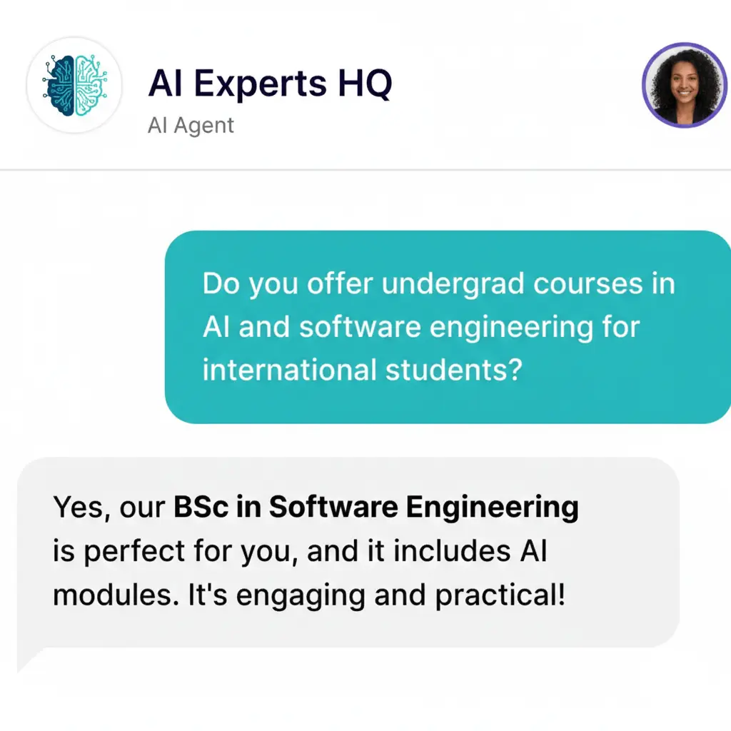 AIExperts Chatbot turns your website into a 24/7 AI sales & support agent, trained on your content to answer questions, qualify leads, and close more customers — automatically, even while you sleep.