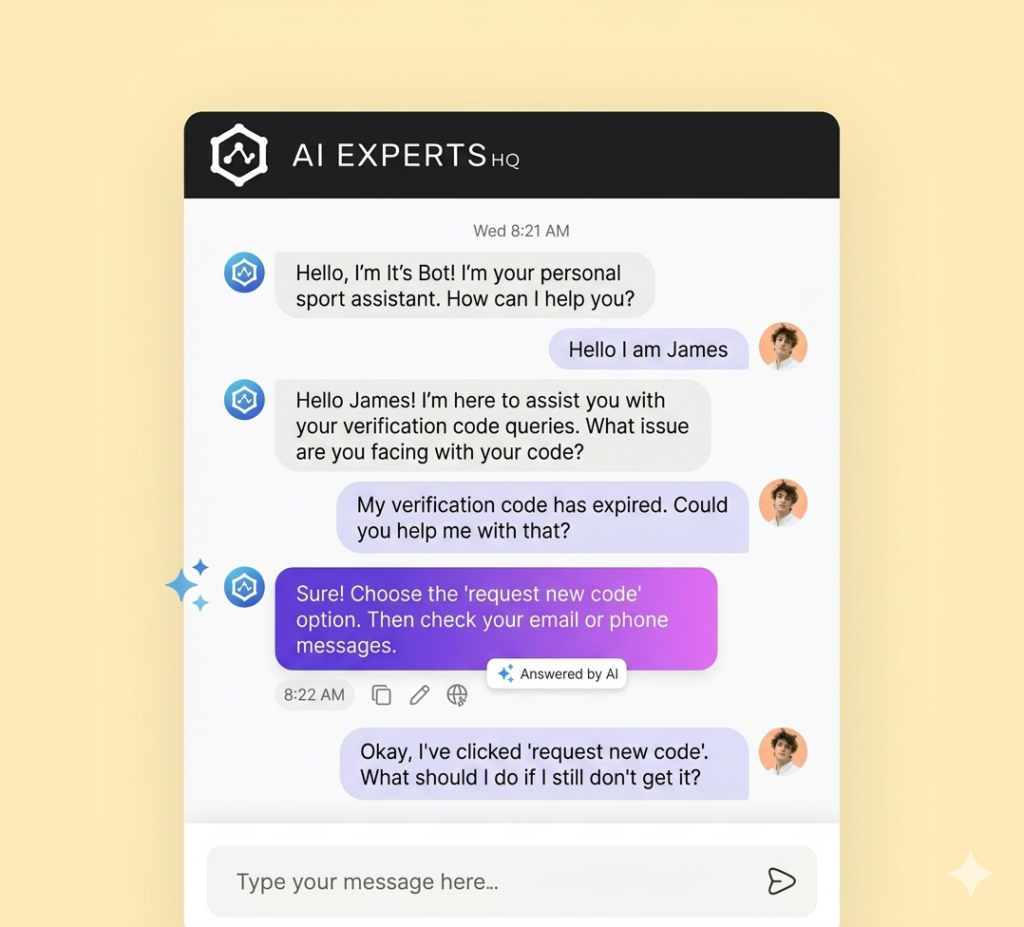 Unlike scripted bots, AI Experts HQ chatbot understands context, learns from your business data, and delivers natural, human-like conversations.