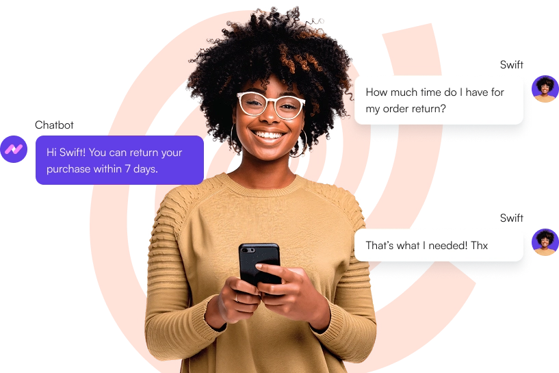 Add an AI chatbot to your website, LiveChat, Messenger, or Slack to handle all support cases automatically, 24/7.
